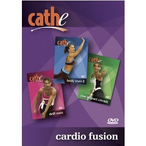 Cardio Fusion is another one of Cathe’s compilation workouts. She has four of these compilations and what they really are is premixes of 3 or more workouts. Her other compilation collections include: Terminator, Hardcore Extreme and Timesaver from the Body Blast series. Since I adore Cathe’s premixes, I love her compilation DVDs. It’s very cool, IMHO, that she creates a workout, then uses premixes to make the workout adaptable to so many different situations. So a single workout, is really multiple workouts. And on some of her DVDs that contain two workouts, you will also get bonus premixes that combine the two workouts into something completely new. Compilation DVDs always combine more than two workouts.