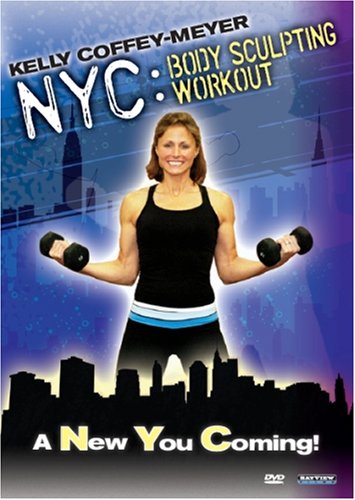 Since I am so enamored of Kelly Coffey-Meyer’s 30 Minutes to Fitness (30MF) workouts and I loved her earlier (not 30MF) Step Boxing workout, I decided I need to try some of the workouts she created prior to 30MF. Enter NYC, which stands for New You Coming. It was released in 2006. I really, really like this workout. It is not an advanced workout; intermediate with the right weights (if you use weights similar to what Kelly and crew are using it would barely be intermediate), but it is a very good and very fun total body strength workout and I just loved it. I will used it for a recovery workout in the future. I have a few recovery level workouts that I really enjoy but I never seem to do them. I do think it is important to push myself, but not every single day. I really need to make a point to use recovery workouts more often. Especially when they are this much fun!NYC consists of 53 minutes of fast-paced circuit training. Kelly and crew use an 8 inch step and two weights: one “heavy” set and one light set. I use quotes for heavy because they don’t look heavy, though she doesn’t reveal the how may pounds she is using. I used a wide variety of dumbbells, but it was a bit challenging the first time doing this workout because of how fast paced it is. In the, future I will have the dumbbells very close by so I can change them out quickly. You only use the step for strength work—this is not a cardio + strength workout—so having dumbbells fairly close by and even on top and around the step will not get in your way. Kelly places her dumbbells on the step frequently. The workout is structured by alternating exercises for an upper body muscle group with unweighted lower body work. For instance, you will do several back exercises, then you do a lower body exercise (no weights for lower body work), repeat the back circuit, do a different lower body exercise, then move on to the next upper body muscle group. You do this for the entire workout. The muscle groups that are alternated with lower body work appear in this order: back, biceps, shoulders, triceps, chest, core (yes, even the core is alternated with lower body exercises).