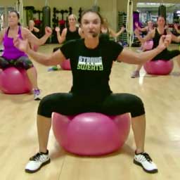 - Jacks while sitting on stability ball / alternating heel kicks forward while sitting on stability ball (you are bouncing on the ball while doing these moves)