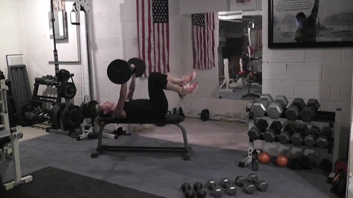 - Chest press (25#BB all 4 sets) (she does these reps fast)