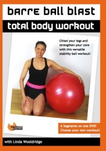 Barre Ball Blast is a collection of primarily lower body and core segments that use nothing but the stability ball and a mat–so body weight training. There are 6 segments plus a warm up and stretch. You can choose “Play all” for a 115 minute workout, or use one of the premixes that group segments together (along with warm up & stretch) and are anywhere from 44 minutes to 73 minutes long, or you can go to the chapter menu and pick and choose what segments you want to do.