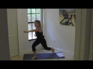 - Plie squat side to side, touching hands to floor w/ each squat; changes to reaching arms overhead and keeping feet in plie when you step together (narrow plie to wide plie)