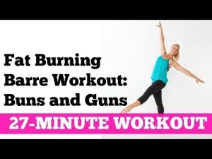 Buns & Guns is 27 minutes long; 6:30 minute warm up (warm up has lots of plie squat variations and lunge variations with arm movements) and 1:30 minute stretch. (Workout time on YouTube shows it is 31 minutes but the last 4 minutes is a credit for the music.) Equipment: light dumbbells. Jessica is using 3 pound dumbbells; I used 6 and 3 pound dumbbells. The dumbbells listed below are what I used.