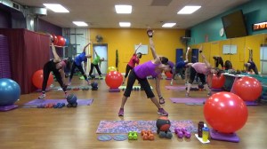 Fat Burning Cardio/Core Mashup is a fun and intense workout that alternates core work with cardio intervals and you use lots of equipment. About 40 minutes into the workout you get a short water break and when you return, you also add in some shoulder strength work, in addition to the cardio and core work. Everything is done in 40 second intervals. You use the medicine ball a lot at the beginning of the workout. I was going to use my 8 pound medicine ball, but I am feeling pretty sore from doing Fit Body by Julia‘s PHAT workout yesterday so I just used the same weights and med ball weight as Yvette and class and I still got an excellent workout.