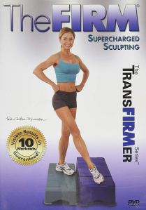 This workout uses the TransFirmer which is two full length steps–one is 6 inches, one is 8 inches, they can be stacked so you also have a 14 inch high step and there are ridges so the 6 inch step fits securely into the 8 inch step to create an incline. I no longer have the TransFirmer. I gave it away when I finally got the incline wedges for my club step, but I still have my old Firm Box. It does incline but doesn’t have the ability to be 3 different levels, it only does 6 and 14 inches + it inclines. Here is how I substituted for not having a TransFirmer. I had my club step set up at 8 inches. I used my Firm Box for 6, 14 and incline circuits. It worked well. This is not one of the TransFirmer workouts where you have to do a lot of awkward substitutions if you don’t have the TransFirmer. As long as you have a step at 6 inches and 14 inches plus the ability to incline, then you can do this workout with minor modifications that are easy to figure out on your own. The only real problem with not having an actual TransFirmer is how quick and easy it is to change the positions of the TransFirmer. It is not that quick with the Firm Box or a club step so I had to pause the DVD a few times so I could get mine set up.