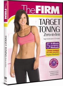 Target Toning (Zero-in-Ten) contains five 10 minute workouts led by Rebekah Sturkie and Emily Welsh. Each 10 minute segment targets a different muscle group and one is a pure cardio workout, though all of them contain cardio bursts. Do all 5 and you will get a total body cardio + strength workout. You can select each workout individually, choose “play all” or go to the customizeable menu in which you can create your own workout, putting together however many segments you want in whatever order you want to do them. There is also a 6th 10 minute total body workout that used to be available before Firm Direct closed it’s doors. The website is provided on the DVD but firmdirect.com is gone. )o: So no bonus workout. This does make me sad. Long before I discovered Cathe, I was a lurker on the Firm forums (that is actually how I discovered Cathe!). And, of course, The Firm is what made me a home DVD fitness addict. So very sad they no longer exist.