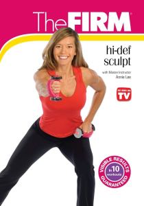 Hi-Def Sculpt is part of The Firm‘s CardioWeight System and it’s led by trainer Annie Lee. This workout is available on its own but when I got it, it came with 3 other workouts: Cardio Overdrive, Hard Core Fusion and Cardio Party, plus the CardioWeights. The CardioWeight System is a collection of workouts that came with a pretty cool dumbbells set. It had inter-changable/screw-on bells and weighted bars. I still use those weights but I keep them at 4 and 7 pound pairs. BTW, that is the heaviest you can make your CardioWeights. To really go heavy in Firm workouts they combine the two dumbbells in one hand for 11 pounds. Yeah. 11 pound is not “heavy.” So to really lift heavy you will obviously need heavier dumbbells.