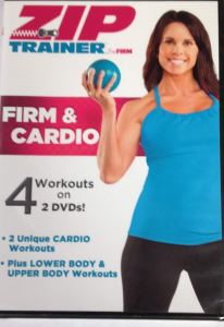 Firm & Cardio are the deluxe add on workouts available at the time the Zip Trainer program came out (see that review for more info on what a Zip Trainer is). This deluxe add on came with a 7 pound core ball but the core ball is no longer available, only the DVDs. Firm & Cardio includes 2 DVDs. One DVD has a 12 minute cardio workout and a 12 minute lower body workout, plus a warm up and cool down. The other DVD contains a 12 minute upper body workout and a different 12 minute cardio workout plus a different warm up and cool down. You have the option of playing each workout by itself (with the warm up and cool down automatically added) for 20 minute workouts or choose play all and play both workouts on the DVD back to back (with warm up and cool down automatically added) for a 30 minute workout.