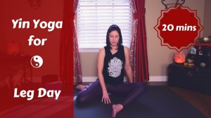 Yin Yoga for Leg Day is 19:30 minutes. Equipment: yoga block and rolled up blanket or beach towel.