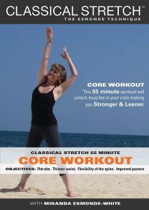 Classical Stretch‘s 55 Minute Core workout is actually a full body workout. Miranda shares in her intro that it is one of her student’s favorite workouts. She also says that it is a posture workout and in her 2:45 minute intro she describes proper form for some of the moves. The workout is set on a rocky beach in Jamaica.