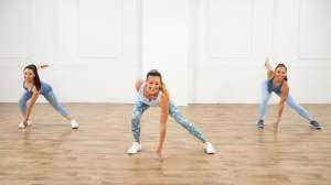 - Reverse lunge into front kick (the second time through the circuit both Anne and the advanced modifier add touching the ground during the reverse lunge)