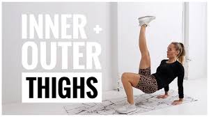 Inner + Outer Thigh Slimming Workout is 14 minutes; 30 second intro. No equipment needed except a fitness mat if you are on hard floor.