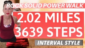 Rock Solid Power Walk is one of AngieFitnessTV’s longer low impact cardio walks. This one is set up pyramid fashion; the intensity of the walk increases as the workout progresses. There are 7 songs and each song has a faster beats per minute so you will be marching faster each time the song changes–until the last 2 songs. The second to last song slows down to the same beats per minute as the first song, which serves as a warm up, so the second to last song serves as a cool down and the final song is the stretch. I wore an 8 pound vest, a 10 pound belt, 2.5 pound ankle weights (5 pounds total) and a 1 pound weighted glove on my right hand. My left hand had nothing due to shoulder surgery. I combined this walk with Angie’s 16 Minute Power Walk Using Light Hand Weights for a 57:30 minute cardio walk. The majority of the walk, even with all of the weighted things I was wearing to increase intensity, I was in the fat burn zone (62% according to my FitBit). I did get spikes into my cardio zone totaling 22 minutes. So this was a steady state cardio walk even with additional elements added to increase intensity. My total steps between the two walks was 5740.