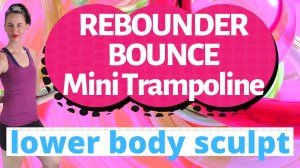 While I was doing the workout I didn’t feel like it was working my legs that hard but about an hour later, my hips were feeling worked, and now about 5-6 hours later, I am feeling it in my glutes, so maybe it worked me harder than I thought! Several times during the workout Angie referred to this as an “intense workout.” I didn’t find it terribly intense. And that’s okay btw–but I have done many very intense rebounder workouts and few of them were created by Angie (maybe none of them but I have done a lot of Angie’s rebounder workouts and maybe one or two were intense, but when I think of intense rebounder workouts my mind goes to other trainers). And that’s okay because she still creates excellent and fun rebounder workouts but just know that if you are looking for intensity in a rebounder workout, there are far more intense workouts done by other trainers. Off the top of my head Linda @ Barlates creates some super intense rebounder workouts. One way to increase the intensity of this workout is, after the booty band is added to the cardio, continue adding arm movements. Angie stops using her arms once the booty band is added, but I continued to add arm movements to keep my heart rate elevated.