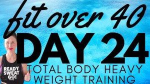 Total Body Heavy Weight Training is Day 24 in AngieFitnessTV‘s Fit Over 40 fitness program. This workout is very different from Angie’s other Fit Over 40 workouts that I have done thus far. First, all of her others that I’ve done are circuit workouts. One approx. 10 minute circuit that is repeated once. Second, she did not film this workout specifically for the Fit Over 40 program like she did the other workouts in the program. This was taken from one of her live workouts. She talks about doing other things in the course of the workout other than strength training (some cardio circuits), which have clearly been edited out. Also, though this is titled “heavy weight training” it is not. This is a high rep, endurance level workout–not a heavy strength training workout. In order to truly lift heavy (to lift 60-85% of your 1 rep max), you are lifting far fewer reps (6-12 reps per set) with adequate rest/recovery periods between sets. Nothing close to that happens in this workout. In this workout you are working the same muscle groups for 4-5 minutes straight without any breaks. Impossible to lift “heavy” under those circumstances. You do get breaks between muscle groups but not while working a specific muscle group. However, compared to Angie’s other workouts that I’ve done, she is using heavier weights. So comparatively speaking, for Angie, this might be a heavy weight workout. I say “might” because she has hundreds of workouts and I’ve only done a fraction of them. Maybe she has some where she is doing real “heavy” strength training. She does make comments in the course of the workout that when she goes to the gym she lifts much heavier and then other times she says she hasn’t been to the gym in a while and her strength has decreased and that this workout is really challenging her. She was clearly burning her muscles out in the course of this workout–you could see her struggling at times. That’s what high rep endurance workouts do btw–burn the muscles out. So I am not criticizing; I am just pointing out that the title is inaccurate and misleading. This is a solid total body high rep/endurance strength workout.