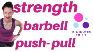 Strength Barbell Push & Pull is part of AngieFitnessTV‘s 15 Minutes to Fit Series. This is a great little upper body strength finisher to tack onto the end of any workout. I used it after Angie’s Fit Over 40 Total Body Heavy Weight Training which had already worked my upper body hard. This helped to really finish my upper body off. Especially my left arm. Angie uses a light barbell for the entire workout. I used a mixture of barbell and dumbbells. The workout does not give you any time to add or remove the plates on your barbell, plus I have to baby my left shoulder. So if you need different weights for different muscle groups (which you should), then have everything set up close by since you only have 10 seconds to swap weights. Choose the right weights and this workout will do an excellent job finishing you off. By the end of Total Body Heavy Weight Training, the left side of my body was already trembling. Because of that, I was not able to lift as heavy as I would have had I come to this workout fresh. But that’s okay because this is a finisher workout so that’s the whole point–to finish me off!