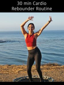 30 Min Cardio Rebounder Routine is 30:05 minutes; 30 second intro, 2 minute warm up and 3 minute stretch.