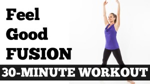 Feel Good Fusion is 33:33 minutes; 2:45 minute warm up and 4:30 minute stretch. No equipment needed but if you are balance challenged like me, you might want to have a chair nearby to assist with some of the moves.