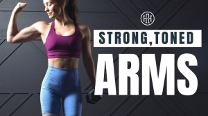 Arm Toning & Strength // Dumbbell Only Workout is an excellent workout from Heather Robertson that focuses on the biceps, triceps and shoulders. If you use challenging dumbbells and you are doing muscle splits (i.e., chest and back are worked on a different day) this workout alone is all you need. She hits your biceps, triceps and shoulders very well. Heather doesn’t have any chest + back workouts that I am aware of but if you want a full upper body workout, you could combine this workout with one of Heather’s back workouts (she has several excellent ones), throw in some push ups and you will have worked your entire upper body nicely. This morning I used this workout as a finisher workout. I did one of Heather’s upper body workouts in which my chest and back were worked and finished my workout off with this. The title is actually incorrect. There are body weight exercises in this workout that use zero dumbbells.