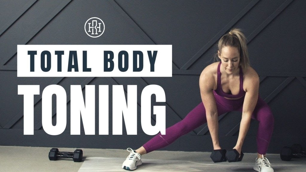 Total Body Strength & Toning // Dumbbell Workout is 38:10 minutes; 30 second intro, 3:30 minute warm up and 3:15 minute stretch. Equipment: dumbbells and a fitness mat. Heather is using 5, 10 and 5 pound dumbbells. The weights listed below are what I used.