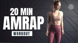 20min AMRAP // Total Body Workout is a different kind of workout from Heather Robertson. AMRAP stands for As Many Rounds As Possible. This workout consists of 4 five minute circuits. Each circuit contains 4 exercises. Each exercise is done for 8 reps. You (and Heather, of course) will repeat one circuit (or Round) as many times as possible within the 5 minutes allotted for it. Before the circuit or round begins, the 4 exercises in the circuit are listed onscreen while Heather previews them. When the circuit/round starts, there is a timer in the upper right hand corner of the screen, counting down the 5 minutes. You follow along with Heather as she does the exercises, keeping pace with her if you are able. Otherwise you will have to work at your own pace. Heather does do some of the exercises pretty rapidly (like push ups!).