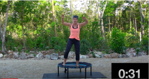 20 Mins Beginners Low Impact Bounce Fit Circuit is a lower intensity rebounder workout from SanFran Fitness. This is a cardio workout though some of the moves near the end might make your legs start to burn. There are no complicated exercises in this workout but Claire does tell you how to make some of the exercises more challenging. I’m not a beginner, so I took those suggestions and got a nice little cardio workout. I also added bounces to pretty much every move, including the recoveries on the rebounder. Today is my rest/recovery day, so I used this workout as a warm up before doing some yoga. It worked very nicely for that purpose.