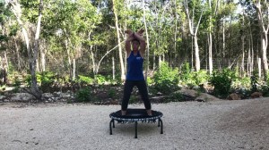 This quick little cardio workout was a lot of fun. No complicated moves but they are all fun and they will all elevate your heart rate and give you a good cardio burn. Today is my recovery day so I used this as a short little warm up before doing yoga. It worked great for that but you could really combine it with anything–another rebounder workout for a longer workout, or use as a cardio finisher after some strength work. It was a lot of fun. I enjoyed all of the moves. My favorite in this workout is the Wacky Jacks.