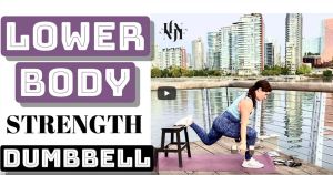 Lower Body Workout at Home with Dumbbells is tough lower body strength workout from Naomi Joy. This one really burned! Naomi manages to hit every muscle in your lower body using all different modalities–resistance loops, ankle weights, dumbbells, a chair or step and body weight. And the intervals are long! Most of the exercises are performed for 60 seconds followed by 15-30 seconds of recovery. Naomi was even burning out during the bodyweight Bulgarian lunge pulses–I was, too! To really fry your legs, on some of the unilateral exercises, Naomi does a weighted exercise for 60 seconds followed by a body weight version for 60 seconds–both on the same leg. By the end of the body weight version (which includes some form of isometric hold), that leg is fried!