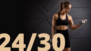 10 Min Upper Body Sculpt Workout is Day 24 in Heather Robertson‘s Daily 10 Series, which is a series of 10 minute workouts that Heather uploaded every day in the month of November. This is a thorough little upper body finisher. Heather manages to hit every muscle in your upper body in just 10 minutes plus she gives you some cardio, making this a short cardio + strength workout. I used this after another, longer upper body strength workout (Opposing Upper Body) and this did a great job finishing the job. The exercises are done interval style: 40 seconds of work followed by 20 seconds of recovery. There are 10 exercises and every 5th exercise is a cardio burst. There is a timer in the lower right hand corner of the screen counting down the intervals and recoveries. During the recovery Heather previews the next exercise.