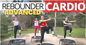 Advanced Cardio Rebound Workout | Mini Trampoline HIIT 15 Min is a short and intense cardio workout from Michelle Briehler. Though this is some advanced cardio, it is definitely not Michelle’s most advanced rebounder workout. Most of the exercises are not advanced or difficult though she does have a squat jump across the rebounder–that is a more advanced move. What makes this more advanced/intense is the speed. Michelle puts together some combos which on their own aren’t too difficult, but done to a quick tempo they become much more challenging. Even Michelle’s background exercisers had problems keeping up at times. Still, this is a great workout to use to squeeze in some quick and intense cardio. I burned 150 calories. Or you can combine it with another workout for a longer workout. I wouldn’t use this workout as a finisher since Michelle doesn’t give you much of a stretch at the end–unless you plan to add an additional stretch to the end. This morning I used this workout to warm myself up before doing another one of Michelle’s rebounder workouts that includes a cool down bounce and a longer stretch at the end. They worked very well together to give me nearly an hour of cardio rebounding.