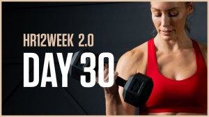 Total Body Strength & Cardio Workout is Day 30 in Heather Robertson‘s 12 Week Program. Wow. This workout was intense! It is a cardio + strength workout filled with jump squats. In fact, this is more of a lower body strength + cardio workout! The upper body gets some work but mostly arms and shoulders. There is no back or chest work and no isolation for the triceps. But the lower body gets lots of work–in both the cardio and the strength exercises. Most of the exercises are metabolic compound exercises that work both the upper and lower body–and give you cardio, too. Plus, each circuit/triset includes one cardio/plyometric jump squat variation. I was gassed out by the end of this workout! In fact, I considered skipping the finisher I had planned. However, the lack of any back or chest work in this “total body strength” workout motivated me to do it anyway. I did Heather’s Daily 10 Day 30, which is also a strength + cardio workout. However, this little finisher hits your back and chest. Between this workout and the Daily 10 finisher, I burned 438 calories.