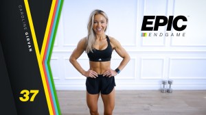Next Level Lower Body Workout with Dumbbells is Day 37 in Caroline Girvan‘s EPIC Endgame program. Another intense metabolic lower body workout. This is a giant set workout–4 exercises done back to back with no rest in between. Within each giant set, some exercises use 2 dumbbells, some use one dumbbell and some are body weight. So she mixes things up a lot to keep it interesting. My lower body feels well worked and I also burned over 400 calories! Great workout! I needed more of a stretch at the end so I tacked on a lower body stretch by Anouline. I discovered her a few months ago and have been using her warm ups and stretches with some of Caroline’s workouts.