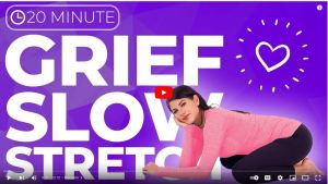 20 Minute Yoga for Grief | Slow Stretch Legs, Hips & Low Back is a deep and gentle stretching workout from Sara Beth. I did this after a cardio workout and if felt very good. You hold each stretch/pose for a long time. How deep you go into the stretch is up to you and your level of flexibility. Sara created several “grief’ yoga practices that I plan to try. Here is how she describes them: “The entire GRIEF Yoga Collection was created to give you a safe space with emotional support & guidance to gently stretch your aching body while pumping the brakes on the “fight or flight response” so you can rest and relax into your grief process.” Though at times Sara talks about grief, she doesn’t overwhelm you with it. She makes the practice a gentle and safe place to take care of yourself.