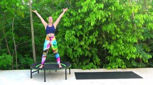 35 Min Wellness Rebounding/Bounce & Stretch is 38:06 minutes (the last minute is Clare talking); 2 minute intro, 5:30 minute warm up, 20 minutes cardio rebounding and 9:30 minute yoga stretch. Equipment: rebounder and a fitness mat.