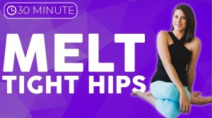 Yin Yoga for Tight Hips | Flexibility & Low Back Pain Relief is 30:29 minutes; it is actually 29 minutes. The last 1:30 minutes is Sara talking about another program. Equipment: bolster and fitness mat.