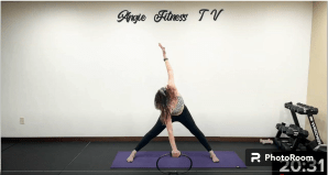 Slow Flow Stretch Yoga is a feel good recovery day routine from AngieFitness. I am not sure about the word “bliss” in the title–I did not feel any bliss myself, but it was a very nice workout. The word menopause in the title refers to everything this workout contains–flexibility, mobility and even some balance training. All things we need to focus more on as we get older. Angie uses a pilates magic circle in this workout. You can substitute other items for it; Angie suggests a pilates ball or a yoga strap. I used the magic circle. It worked nicely for the exercises that you need to hold something but for some it made the exercise too easy (#9 & 10 for example); just placing your hand on the mat or even on a yoga block will give you better mobility work and a deeper stretch. However, for other exercises the magic circle worked very well. For #11 it deepens the stretch in your shoulders and for #17, it adds a unique component that the substitutes will not give you. The first 3 minutes is Tia Chi breathing and arm movements. This was reminiscent of Classical Stretch moves. I did not break them down.