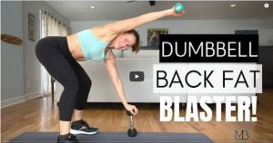 Improve Posture Back Sculpting Workout | Fat Blasting | Dumbbells at Home is 20:20 minutes; no warm up and 30 second stretch. Equipment: dumbbells and a fitness mat. Michelle is using dumbbells ranging from 3-20 pounds. I also noted the weights I used. If only the weight is listed then I used the same weight as Michelle.