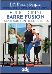 This workout is part of Cathe Friedrich’s Lift, Move & Restore program. This program contains workouts for people who are fit but aging and want to take things down a notch but also want to age well. She notes that these workouts can also be used as recovery workouts for advanced exercisers.