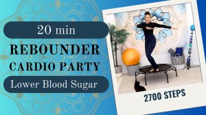 20 Minute Rebounder Cardio Party to Lower Blood Sugar & Cortisol is a feel good rebounder workout from Linda @ Barlates. This is not supposed to be intense. In the write up under the video Linda says that her blood sugar workouts are designed to lower blood sugar levels and reduce cortisol. She doesn’t go into the science of it (which is fine) but if you are interested in more, here is an NIH article about the role of exercise in preventing type 2 diabetes or treating it if you already have it. To summarize though–exercise plays an important role in the prevention and treatment of diabetes because it helps control blood sugar.