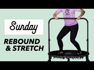 - Stand with legs wide facing rebounder, place hands on rebounder frame and side lunge side to side, stretching inner thighs