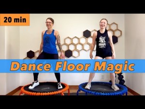 Rebounder Dance Workout is 20:44 minutes; 30 second intro, no warm up or cool down/stretch. Each exercise is done for one minute followed by a 8 second transition. During the transition the upcoming move is previewed. There is a timer in the upper left hand corner of the screen counting down the total workout time.