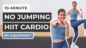 10 Minute Low Impact HIIT Workout is 11:09 minutes; 50 second intro, no warm up or stretch. No equipment needed.