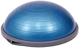 A BOSU Ball is a half stability ball. One side is filled with air just like a stability ball and the other side is flat hard surface. Bosu stands for “Both Sides Utilized” since that is the way that it can be used–the dome side up or the down. Which ever way you use a BOSU ball it challenges your balance which is one of the benefits. Adding a balance challenge to any type of exercise increase the intensity. It can also be used for stretching. The workouts listed below all use a BOSU ball.