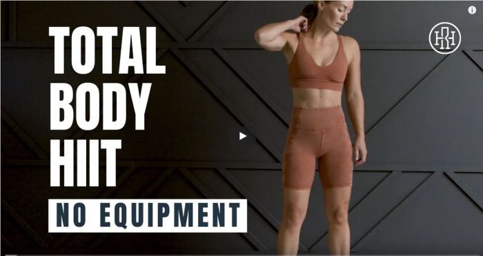 Total Body HIIT Workout with No Equipment is cardio + strength workout from Heather Robertson. The strength is all body weight strength work and the cardio is not low impact--just FYI, there is lots of jumping. I got a great workout. It is not total body in my opinion but that's okay. I use workouts … Continue reading Total Body HIIT WORKOUT with No Equipment