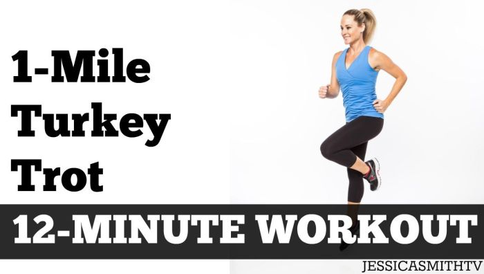 This is a quick little cardio walk from Jessica Smith. It's called a Turkey Trot because it was filmed around Thanksgiving and Jessica devised it as a way to squeeze in some steps between the turkey binge. I did this as a doubles workout and followed it up with another short cardio walk from Jessica … Continue reading JessicaSmithTV: 1 Mile Turkey Trop