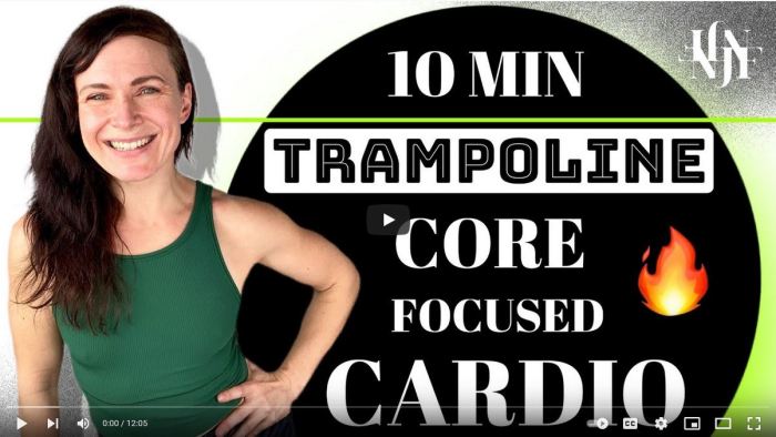 Rebounding Abdominal Core Workout / 10 Min Core Finisher is add on workout created by Naomi Joy. Naomi has a lot of awesome rebounder workouts of all different lengths. In her intro, she shares that she created this workout to add on to the end of one of her rebounder workouts to get some additional … Continue reading Naomi Joy Fitness: Rebounding Abdominal Core Workout / Trampoline Workout Class Video/ 10 Min Core Finisher