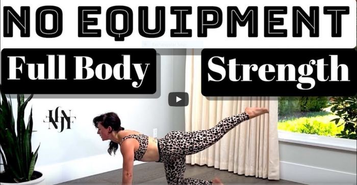 OMG. This workout was so much harder than I thought it would be. What an excellent total body strength workout. Full Body Workout at Home / No Equipment / Low Impact / No Repeat is a body weight strength workout from Naomi Joy and the intervals are long. Each exercise is done for 50 seconds … Continue reading Naomi Joy Fitness: Full Body Workout At Home / No Equipment / Low Impact/ No Repeat