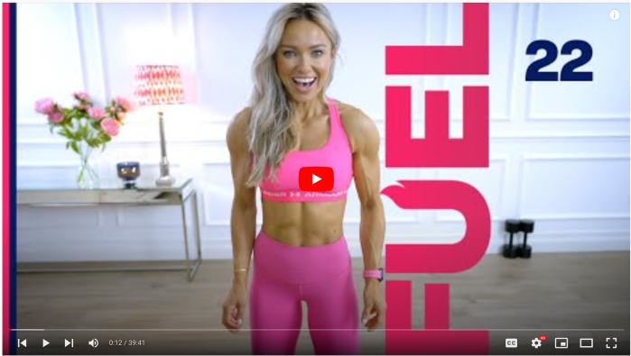 Fat Burning Workout | Low Impact Rebunder Cardio | Full Body Strength | Music Driven is a cardio + strength workout from Michelle Briehler. It is not total body strength. Michelle works your biceps, triceps, legs and core and she does it with high reps so I could not lift as heavy as I normally … Continue reading Fat Burning Workout | Low Impact REBOUNDER Cardio| Full Body Strength | Music Driven