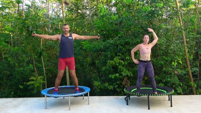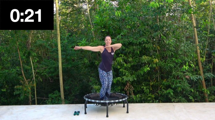 30 Min Rebounding Workout to Focus on Abs & Arms with Weights is a rebounder workout from SanFran Fitness that is split evenly between cardio + upper body strength work and core work. There is a lot of repetition in this workout. For the first half you are doing cardio bouncing on the rebounder while … Continue reading SanFran Fitness: 30 Min Rebounding Workout to Focus on Abs & Arms with Weights