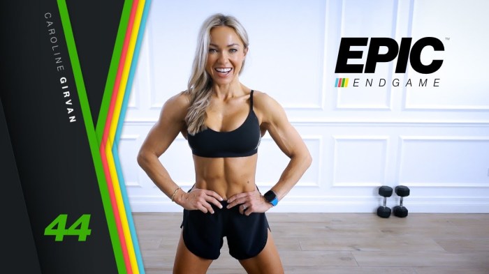 Strength & Cardio is Day 50 in Caroline Girvan's EPIC Endgame and it is also the finale. Since it is the final workout in the Endgame program, the intro is a lot longer than normal and that is because Caroline is doing a recap of not only the entire EPIC Endgame program but also all … Continue reading The EPIC Endgame Finale – Strength and Cardio Workout | Day 50